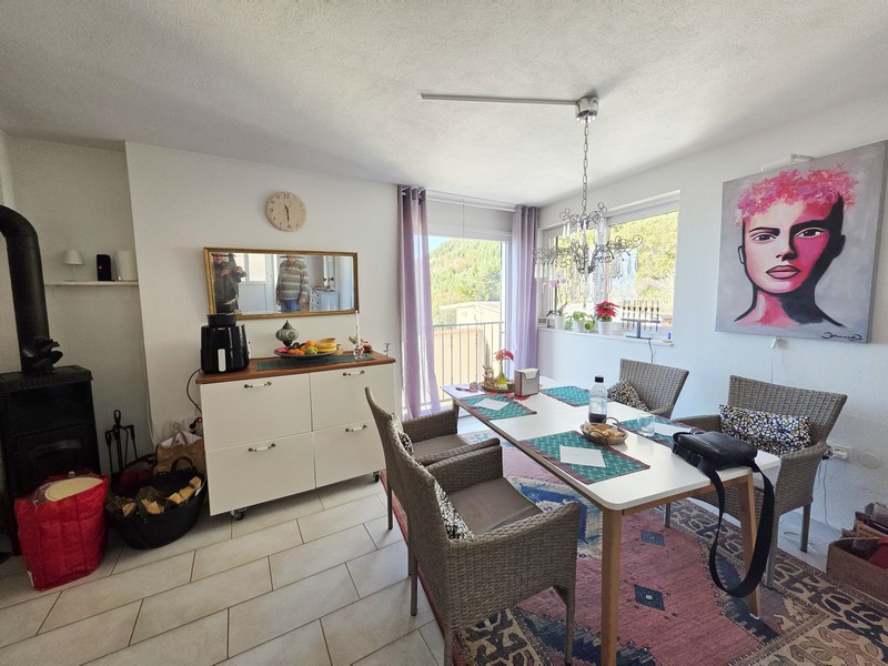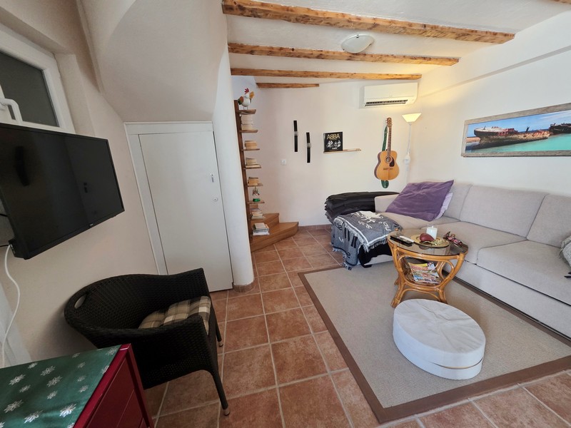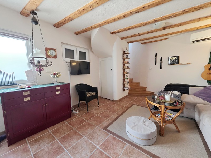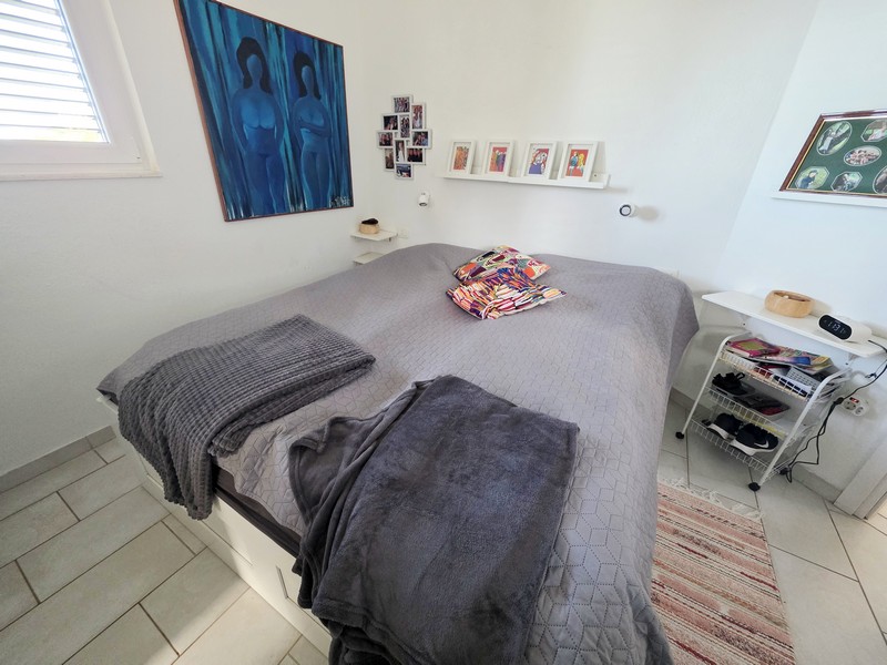 В цокольном этаже находятся гостиная, спальня и ванная комната. Внутренняя лестница ведёт на первый этаж, где просторная столовая с кухней, дополнительная спальня и ещё одна ванная комната составляют сердце дома. На верхнем этаже расположена небольшая рабочая комната с выходом на просторный южный балкон, с которого открывается панорамный вид на море.