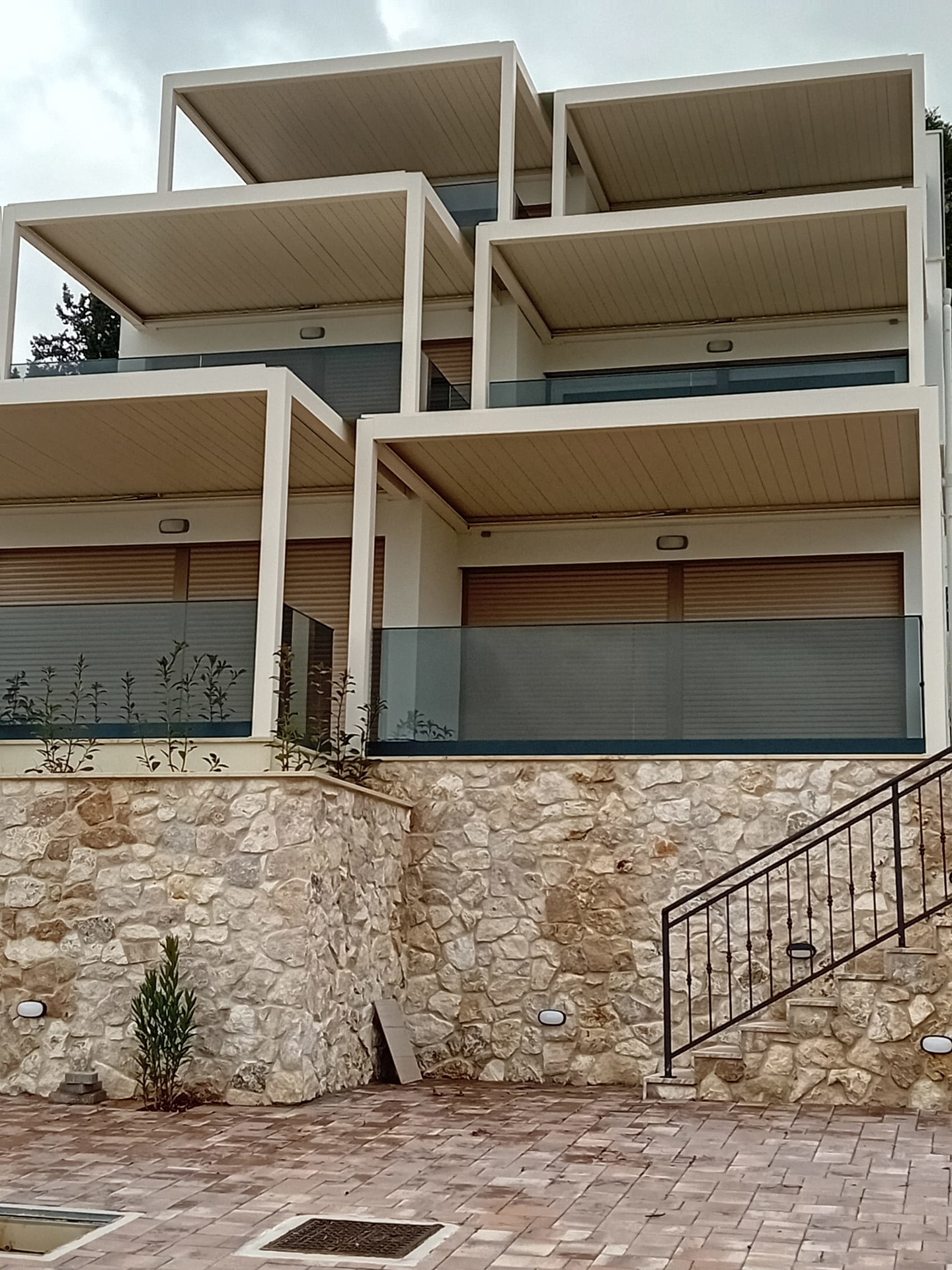 B2, pritličje: 57,20 m2; hodnik, kuhinja z jedilnico, dnevna soba, en spalni prostor, kopalnica, terasa z razgledom na morje, vrt, 1 parkirno mesto. CENA: 348.000 €.