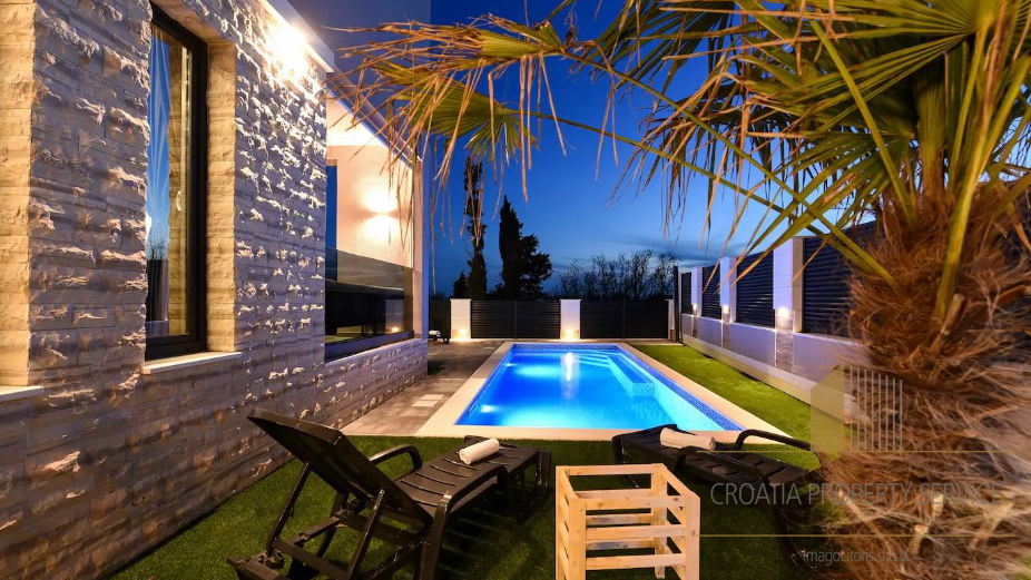 Čudovita vila s bazenom, ki se nahaja v drugem vrsti od morja v Privlaki. Ta izjemna hiša je oddaljena le 100 metrov od kristalno čistega morja in prekrasne plaže.