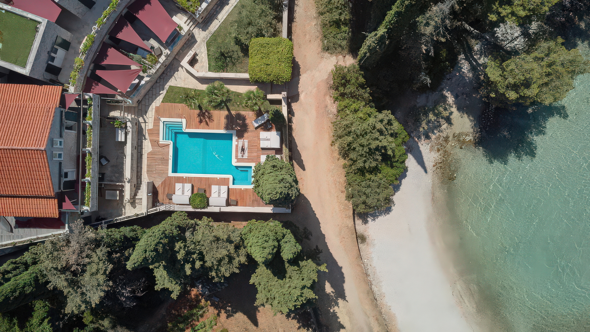 Posebno vrednost predstavljajo terasa z razgledom na morje, zasebni bazen, urejen vrt, prostor za žar ter dodatne vsebine, kot so fitnes, savna, spa center in masažna kad, kar zagotavlja popolno udobje skozi vse leto.