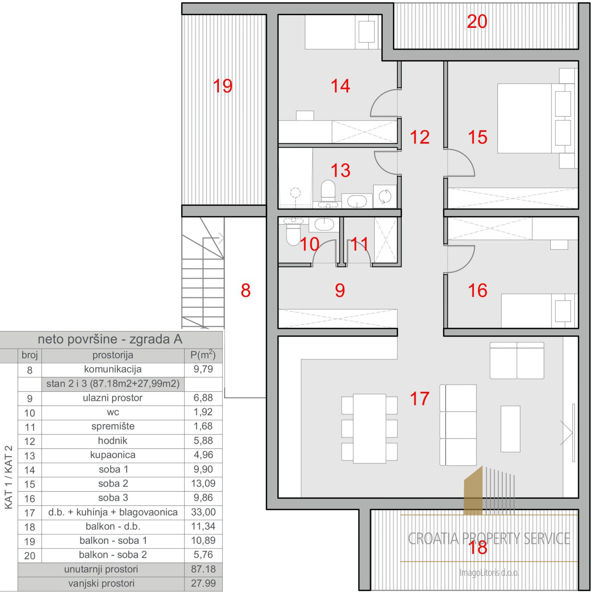 A2, 1. nadstropje; 99,73 m2; 3 spalni prostori, 2 balkona, Cena: 338.999 €.