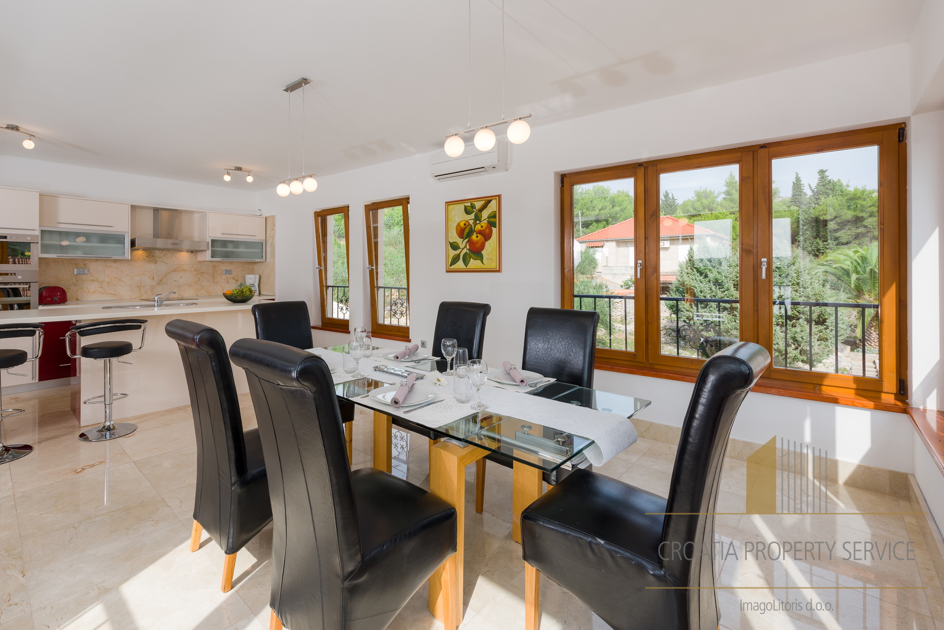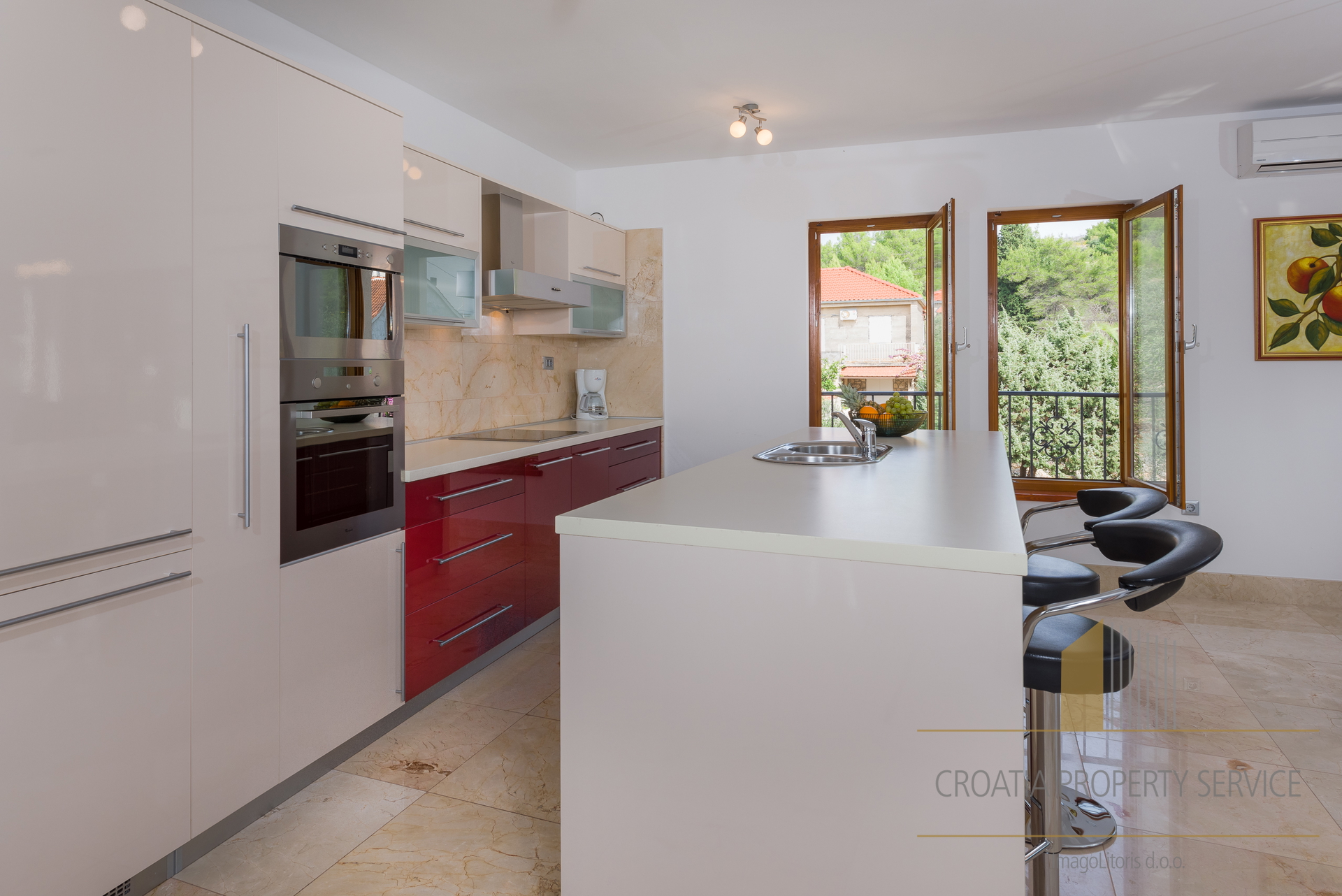 Obkroženo je z urejenim vrtom s starimi oljkami in limonami, stanovanje nudi popolno ravnovesje med sodobnim udobjem in pristno dalmatinsko vzdušje. Vila se nahaja le 38 km od letališča Brač, kar še dodatno poudarja praktičnost in odlično povezanost lokacije.