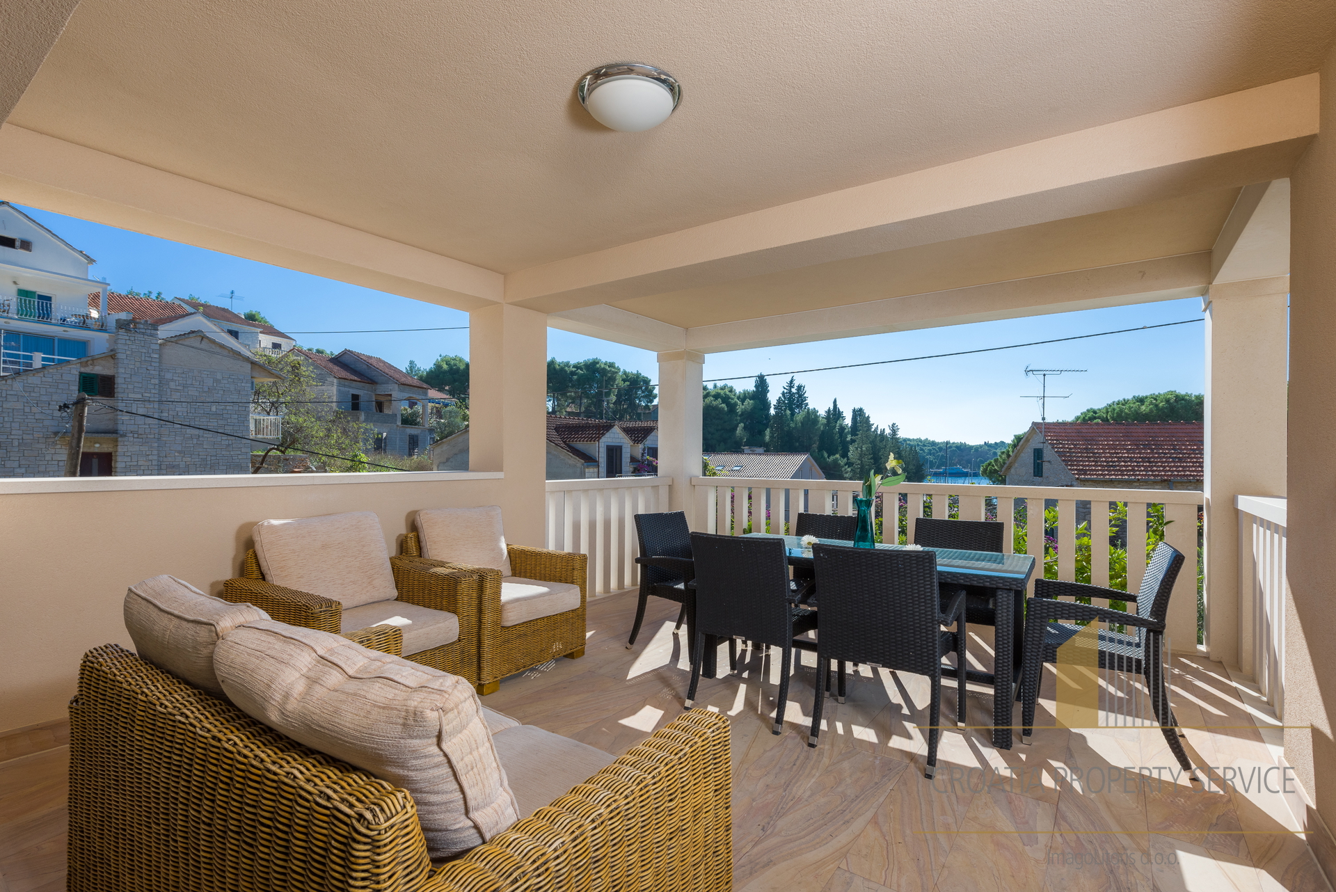 Luksuzno stanovanje na izjemni lokaciji, le nekaj korakov od druge marine v Milni in na kratki peš razdalji od slikovite plaže ter vseh vsebin, ki jih ponuja to očarljivo mestece.